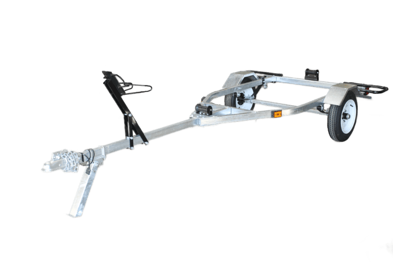 This trailer functions exactly as the powder coated steel Dolly Trailer but has a hot dipped galvanized finish, larger 4.8-12" wheels, 2” ball hitch and LED lights.