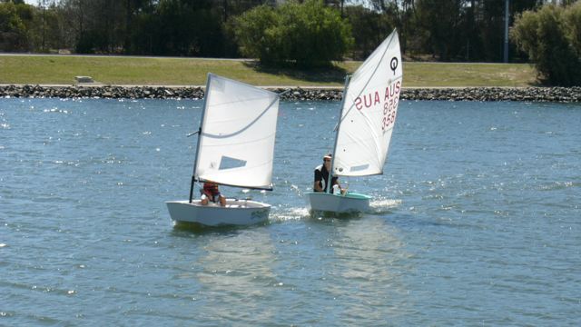 I sailed it and was impressed with it's performance. Photos show an intermediate Optimist sailor in my son's boat. His father (Eric) had another Optimist to sail with him."